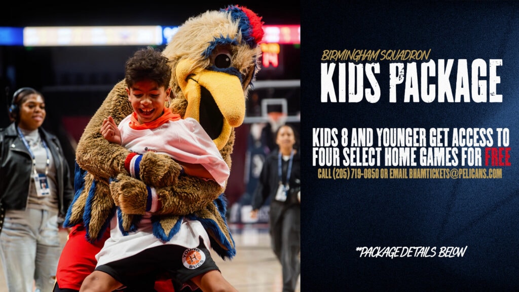 Access to professional basketball games featuring the Birmingham Squadron — the G League affiliate of the New Orleans Pelicans
