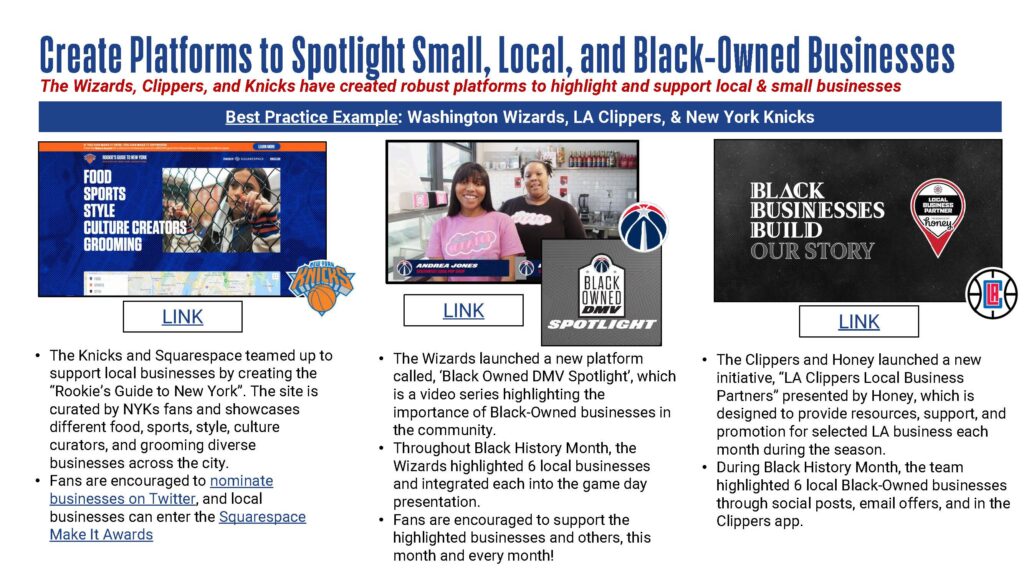 Our goal is to cultivate innovative and strategic relationships and solutions with corporations like yours that share the same vision. We are committed to working with you to achieve your goals. Together, we can develop customized experiences and campaigns to invest in the community to make an impact and expand your brand. Take a look at these case studies from around the NBA to give you a glimpse at what we could also develop with your brand.