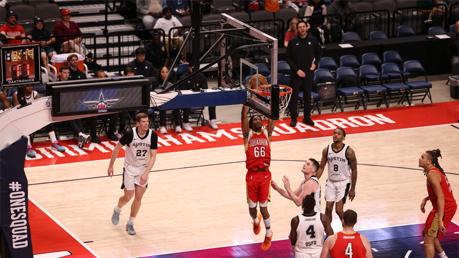 In his debut, two-way guard Trey Alexander led the Squadron (0-1) with 22 points, eight rebounds, and four assists, including shooting 3-of-6 from behind the arc. The 2024-25 Kia G League Rookie of the Year also contributed with two blocks and steals on the defensive end.