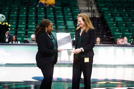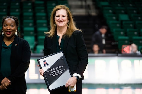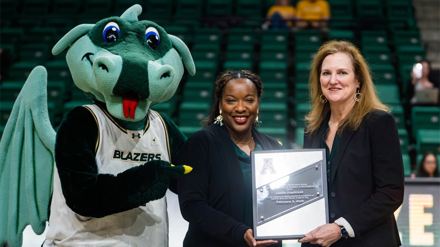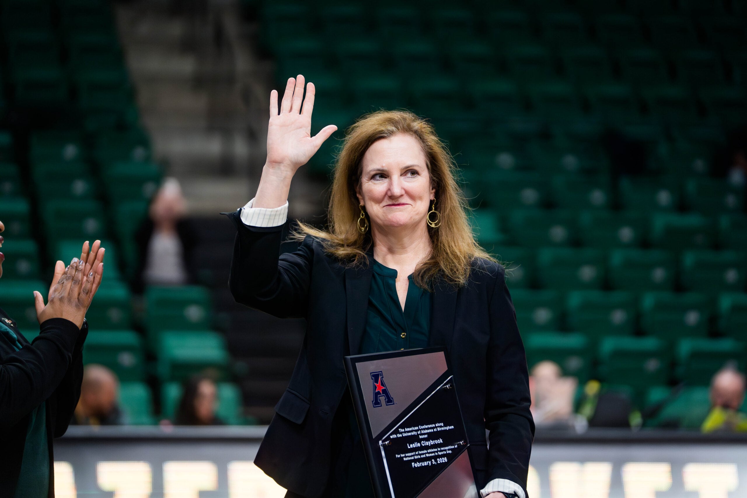 Claybrook's recognition came at the conclusion of the first quarter, when she was honored by the American Conference and UAB "For her support of female athletes in recognition of National Girls and Women in Sports Day."